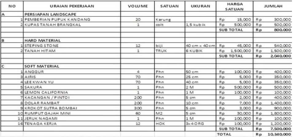 Contoh Rincian Biaya Modal Untuk Usaha jasa membuat taman