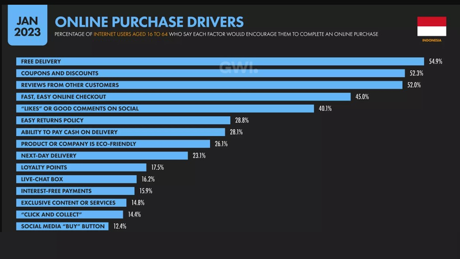 - Pada tahun 2023, keputusan untuk berbelanja secara online melalui penggunaan kupon dan potongan harga menduduki peringkat kedua dengan presentase sebesar 52,3% - Indonesia Digital Insight.