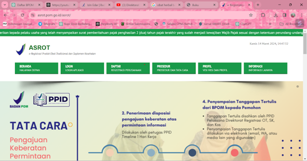 Mengurus izin BPOM merupakan langkah penting yang harus dilalui oleh pelaku usaha di bidang obat herbal tradisional. Berikut langkah mengurus izin BPOM obat herbal secara online melalui Aplikasi Sistem Registrasi Obat Tradisional dan Suplemen Kesehatan (ASROT).
