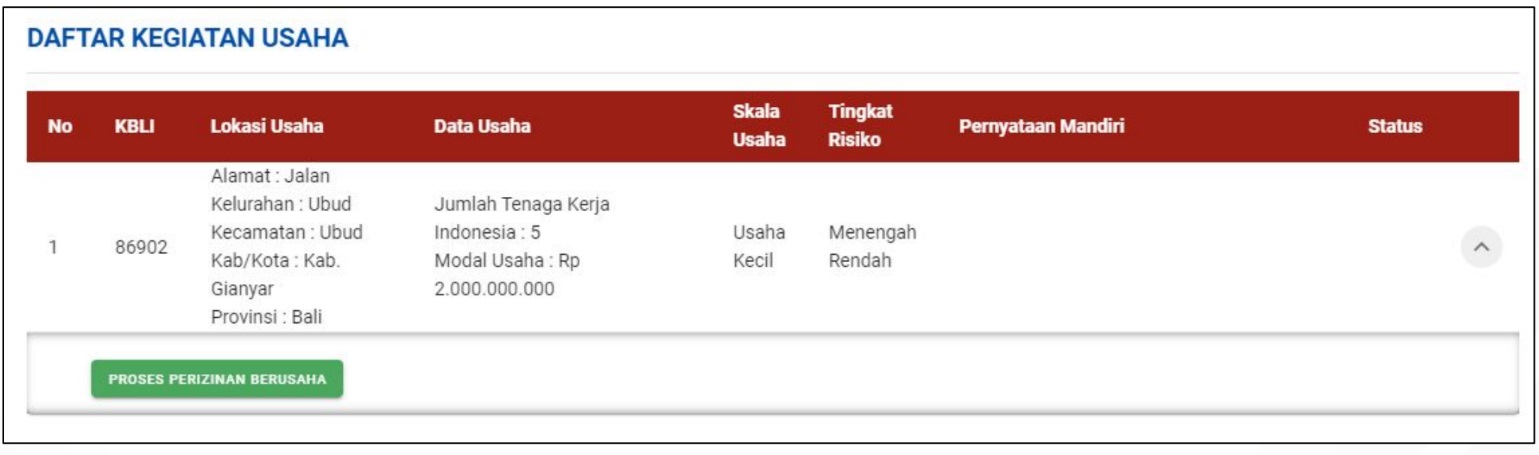 - Klik tombol PROSES PERIZINAN BERUSAHA.