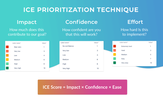 ICE score ini lebih ditujukan untuk pebisnis. Sistem ini membantu pebisnis dalam memprioritaskan ide-ide yang dapat meningkatkan produk atau layanan mereka berdasarkan dampak, kepercayaan, dan kemudahan implementasi.