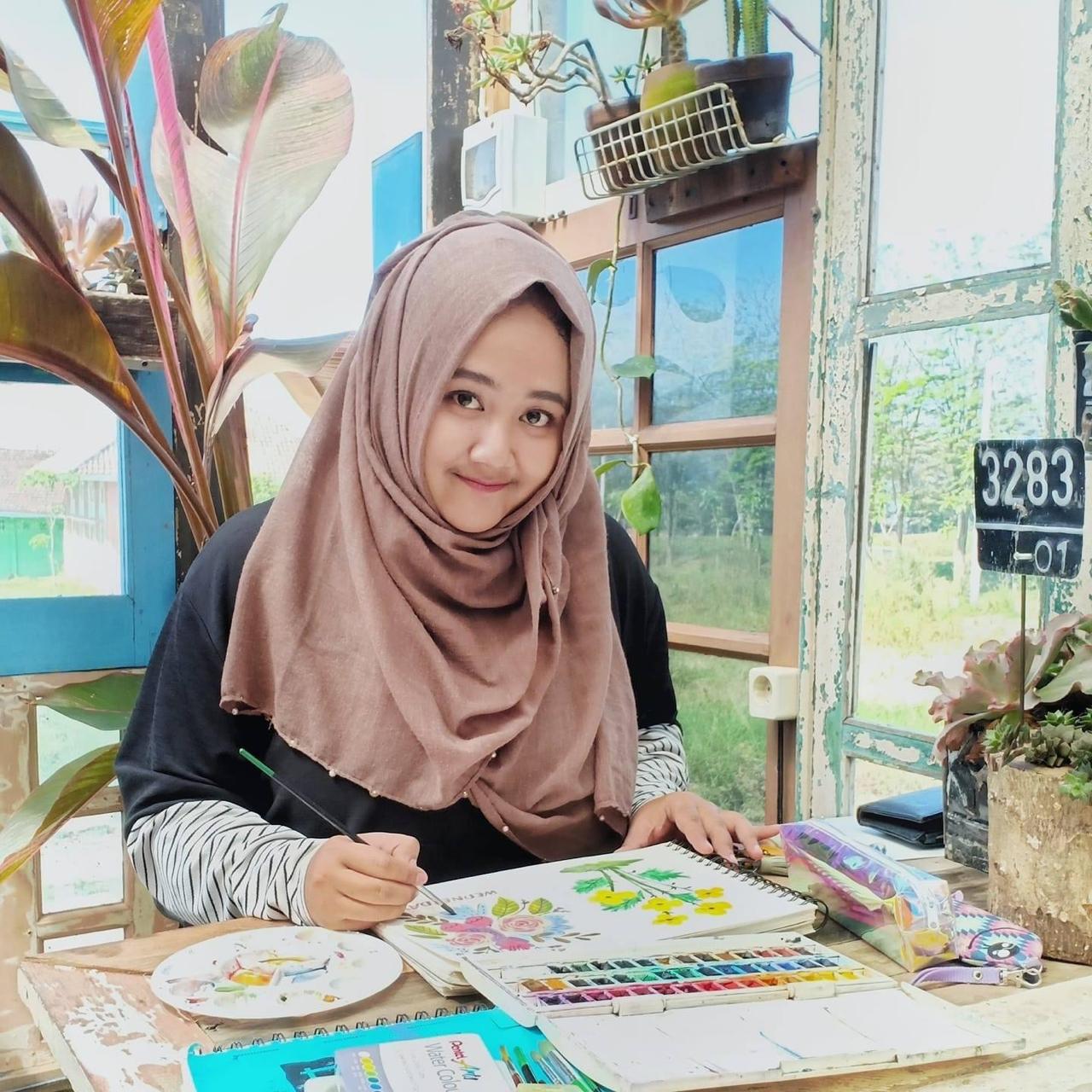“Aku senang banget coba berbagai teknik. Kadang aku padukan teknik tradisional watercolor dengan sentuhan digital. Kuncinya konsisten latihan dan terbuka buat belajar hal baru,” ujarnya.