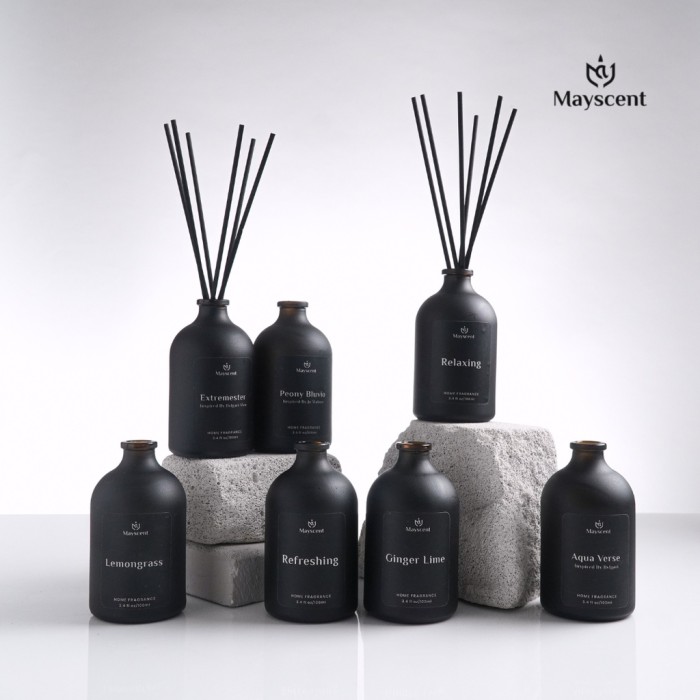 Dalam satu packaging dari best seller produk MayScent, isinya yaitu reed diffuser berukuran 100 ml dengan reed stick sejumlah enam biji berwarna hitam dengan ukuran diameter 3 mm dan panjang 20 cm yang menggunakan bahan fiber. Kemasan dari produk ini cukup simple namun tetap memberikan kesan mewah dan tampilan yang aesthetic yang cocok untuk dekorasi ruangan.