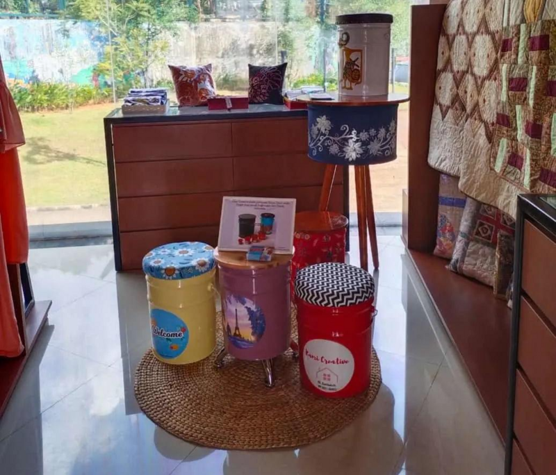 Home Decor Berbahan Dasar Limbah - Umumnya peredaran limbah industri seperti tong besi cukup terbatas. Kalau tidak berakhir di pabrik peleburan besi tua, tong-tong tersebut paling dijadikan sebagai wadah penyimpanan benda cair seperti minyak. Bahkan kadang kala ada orang yang menjadikannya sebagai pengganti polybag untuk tanaman hias, sayuran ataupun buah-buahan.