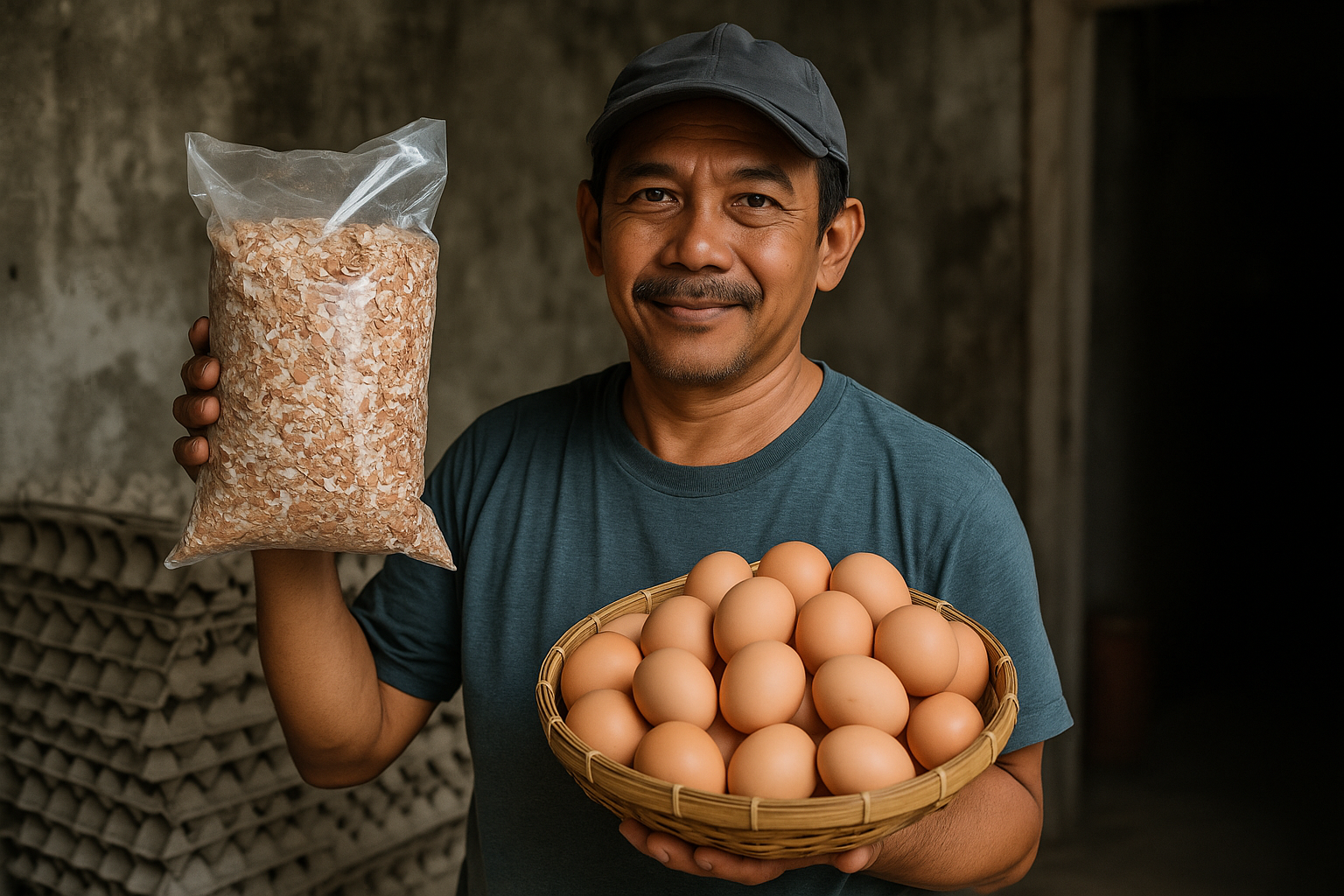 Setelah dicuci dan ditumbuk, cangkang telur dikemas dalam plastik dan dijual di marketplace. Hasilnya? Tak disangka, produk unik ini menarik minat pembeli dari berbagai kalangan.