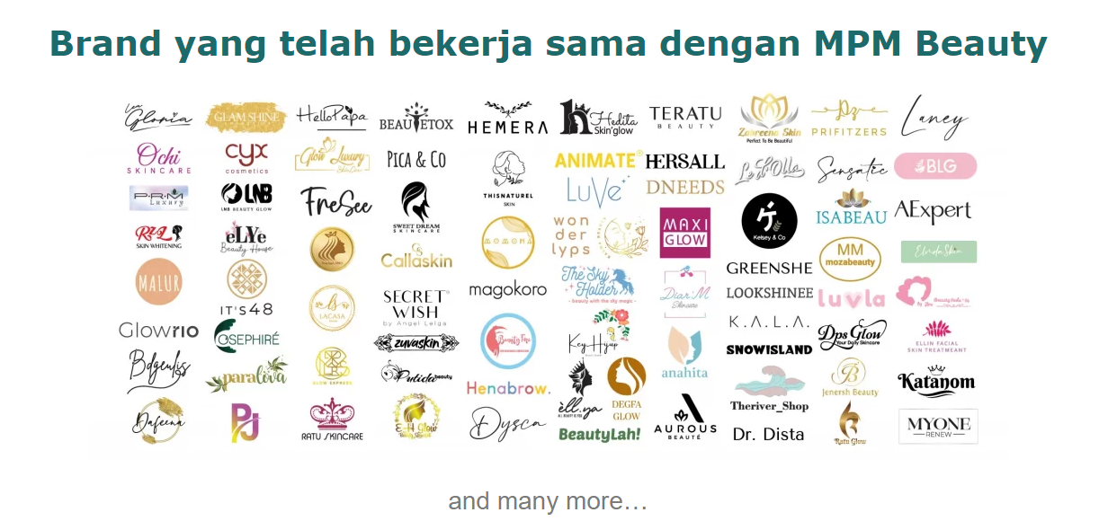 MPM Beauty adalah perusahaan maklon kosmetik dan skincare yang telah tersertifikasi. MPM Beauty telah memperoleh izin edar dari BPOM (CPKB Grade A) dan telah memenuhi standar Halal dari Majelis Ulama Indonesia (MUI). Sepak terjang MPM Beauty di jasa maklon terbilang sangat lama yaitu sudah lebih dari 15 tahun dan telah berhasil mendaftarkan lebih dari 500 produk di BPOM. Nah, kira-kira brand apa saja ya yang menggunakan jasa MPM Beauty? Perhatikan gambar berikut.