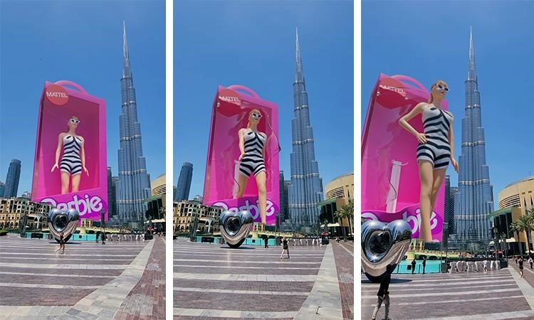 Sebuah agensi konten kreatif Eye Studio memproduksi video CGI yang menampilkan boneka Barbie beserta kotak kemasannya berukuran sebesar ikon Dubai Burj Khalifa. Kehadiran boneka Barbie kolosal raksasa di Dubai ini telah memicu perbincangan dan viral di media sosial, yang menandakan bahwa strategi buzz marketing ini berhasil.