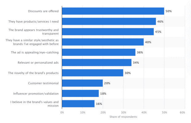 Diskon menjadi alasan utama yang mendorong konsumen Gen Z untuk terlibat dengan merek baru di media sosial. Jadi jika semua hal lain gagal, adakan penjualan berbasis diskon.