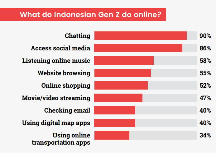 Berbicara dan beraktivitas di media sosial merupakan dua kegiatan online yang paling populer di kalangan Generasi Z di Indonesia.