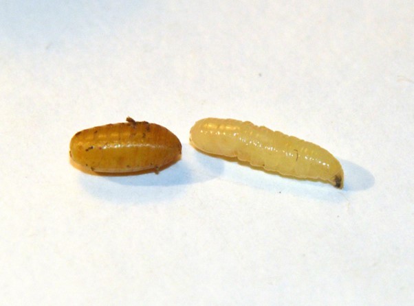 Perbedaan fisik lalat dan larva pada jenis lalat BSF, lalat rumah dan lalat hijau.