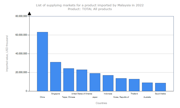 Indonesia menjadi salah satu pemain kunci untuk Peluang Ekspor Indonesia ke Malaysia. Dari data terkini yang dirilis oleh International Trade Center, kita bisa melihat bahwa Indonesia berada di posisi enam besar sebagai supplier barang-barang top ke Malaysia, dengan total nilai ekspor yang gak main-main, hampir menyentuh 20 miliar USD.