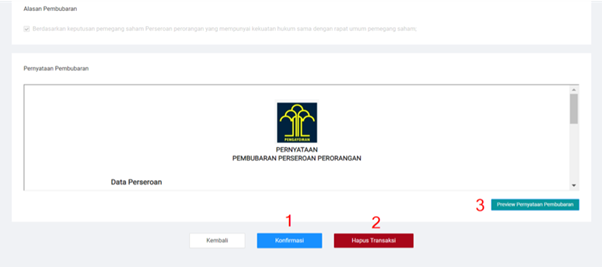- Konfirmasi, bila Sahabat Wirausaha sudah yakin dengan kesesuaian data Permohonan Pembubaran Perseroan.