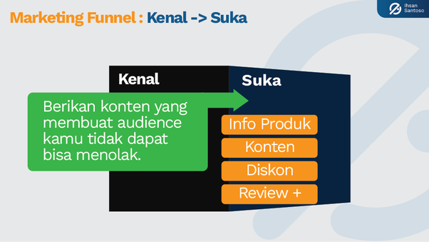 Pada tahap ini, kita fokus mengajari konsumen tentang betapa bagusnya penawaran kita untuk memenuhi kebutuhan mereka. Untuk itu, kita bisa melakukan beberapa hal, seperti :