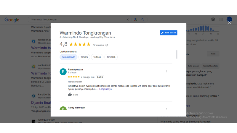 Jika kita memiliki Google bisnis, jangan lupa bahwa selalu ada ulasan: