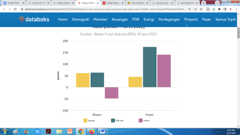 - Katadata. Ekspor RI ke Rusia Turun, tapi Impornya Naik pada Maret 2022.