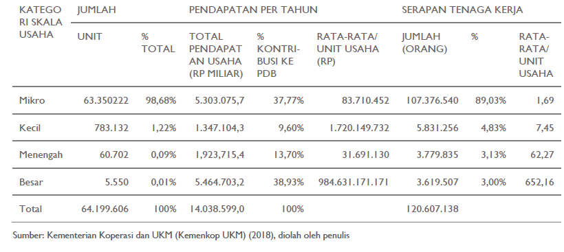 Jumlah Unit | Persentase Unit Usaha | Serapan Tenaga Kerja | Kontribusi terhadap Pendapatan Domestik Bruto |