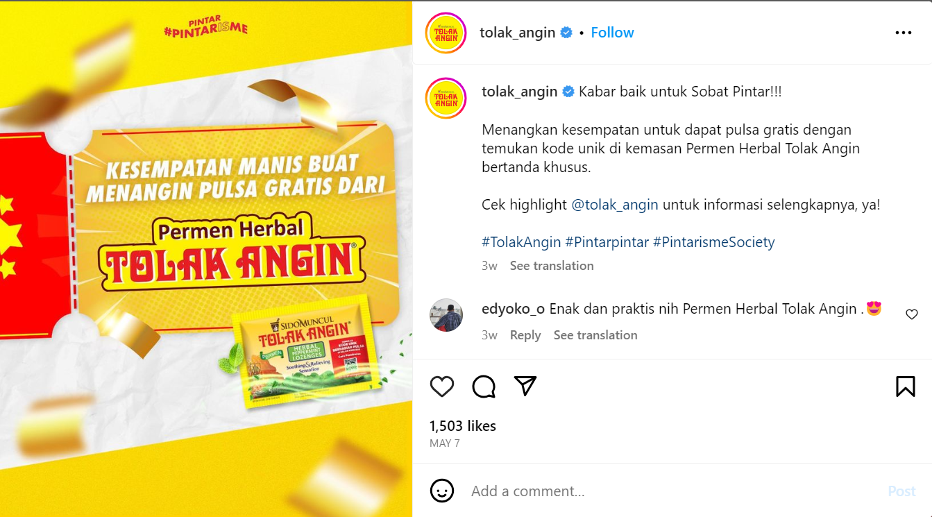 Sumber: www.instagram.com @tolak_angin