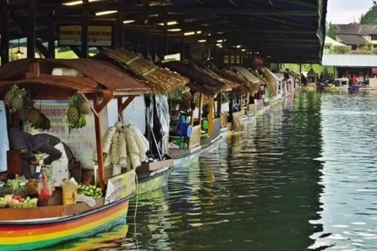 Sesuai namanya, tempat ini merupakan pasar terapung di atas air dengan suasana pedesaan yang asri dan berbagai makanan tradisional yang lezat. Tidak ketinggalan, sajian makanan di sini juga ditemani dengan pemandangan yang indah tentunya. Selain itu, kita juga bisa berfoto ria sambil mencoba berbagai macam wahana permainan yang seru, seperti Go Kart Lembang Speedway, Rainbow Slide, Wahana Kota Mini, dan lain-lain.