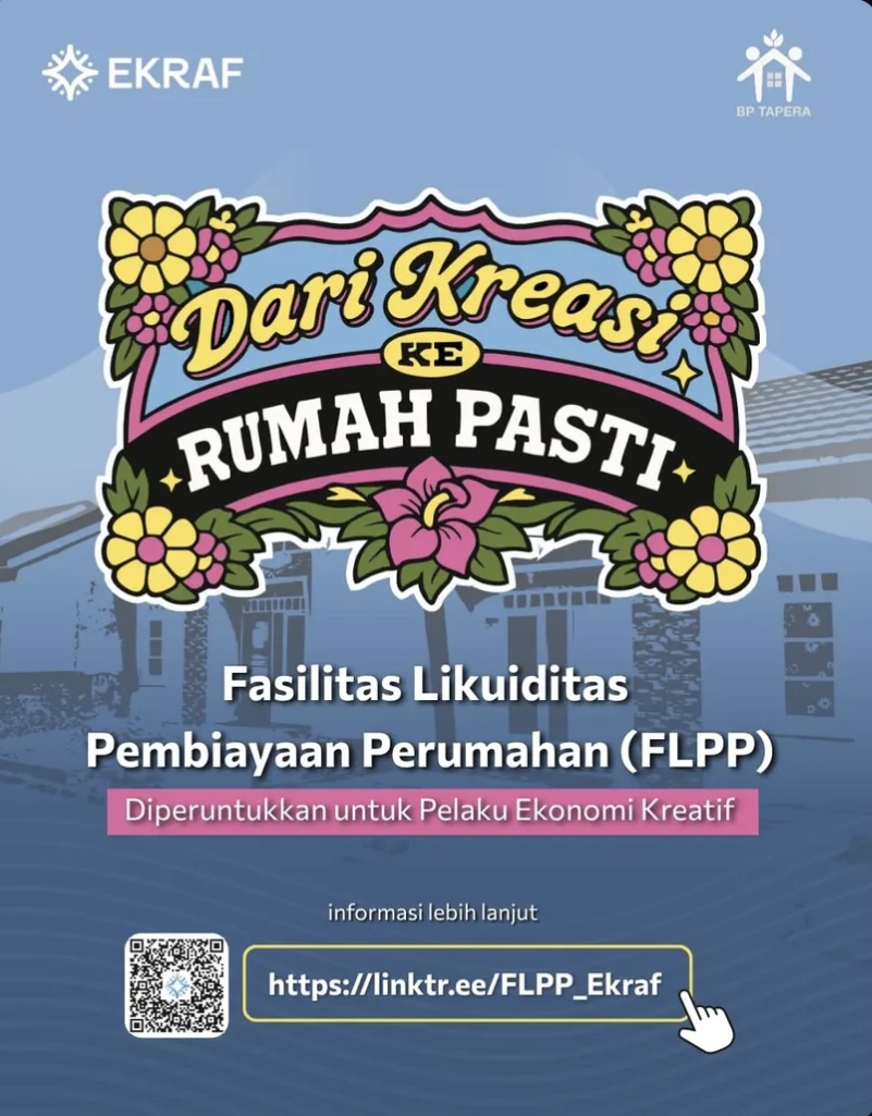 Informasi lebih lanjut tentang Program Kemenkraf x BP Tapera dalam penyaluran rumah subsidi melalui Fasilitas Likuiditas Pembiayaan Perumahan (FLPP) untuk Pelaku Ekraf.