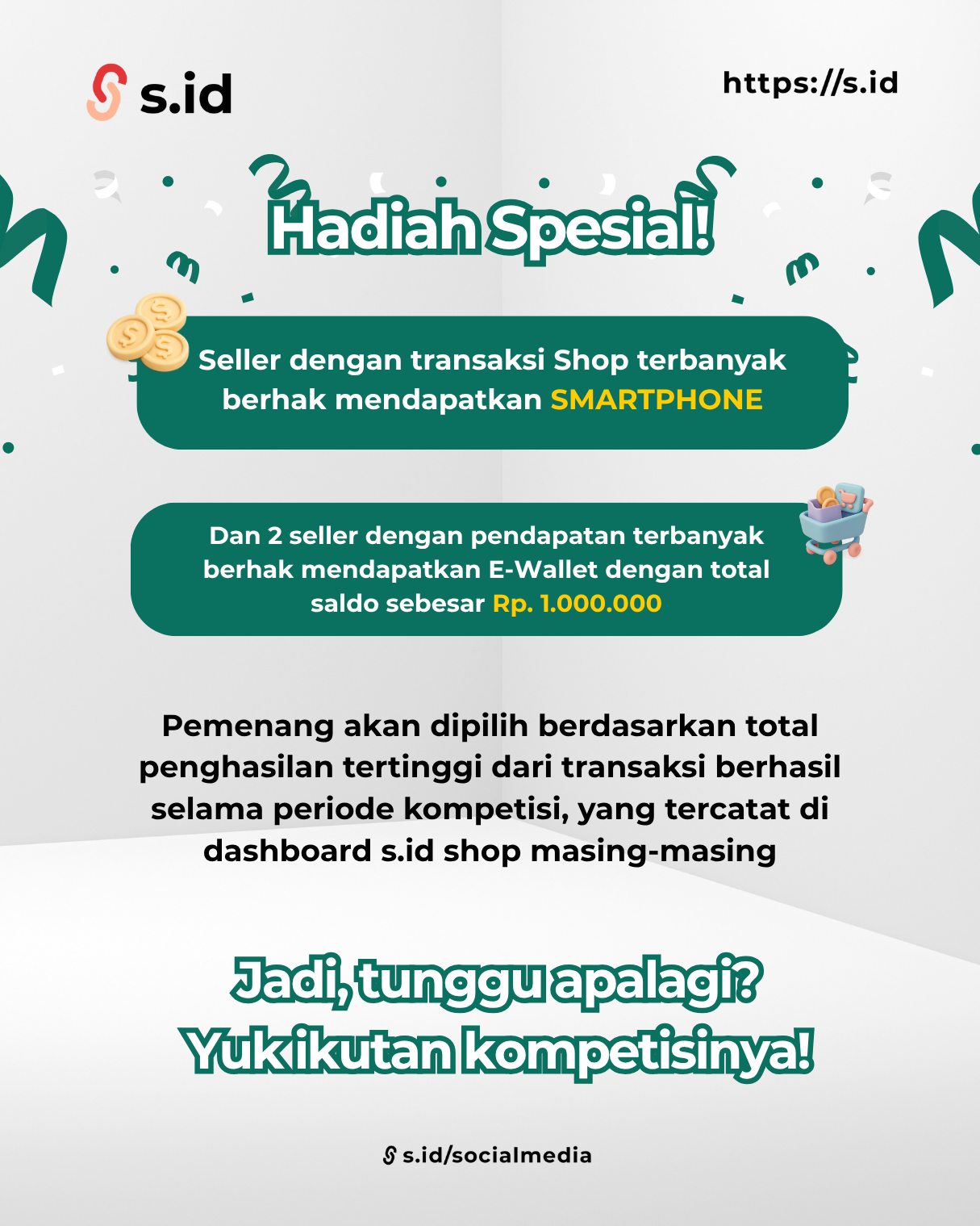 - Jadi TOP SELLER dengan pendapatan tertinggi di s.id Shop