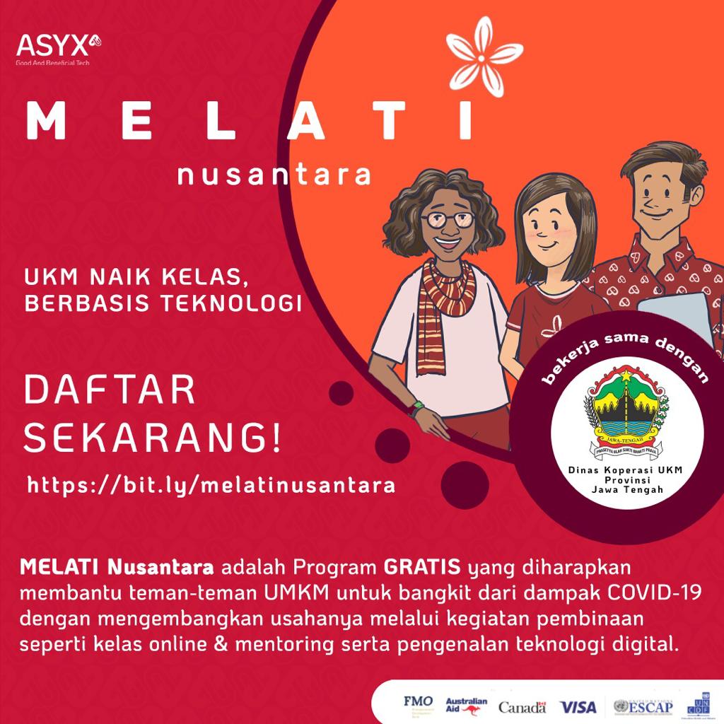 Teman-teman yang buka usaha atau mau usahanya naik kelas, tapi bingung mau mulai darimana? Sekarang hadir program MELATI Nusantara loh! Ayuk kita belajar bersama dalam mengembangkan usaha!